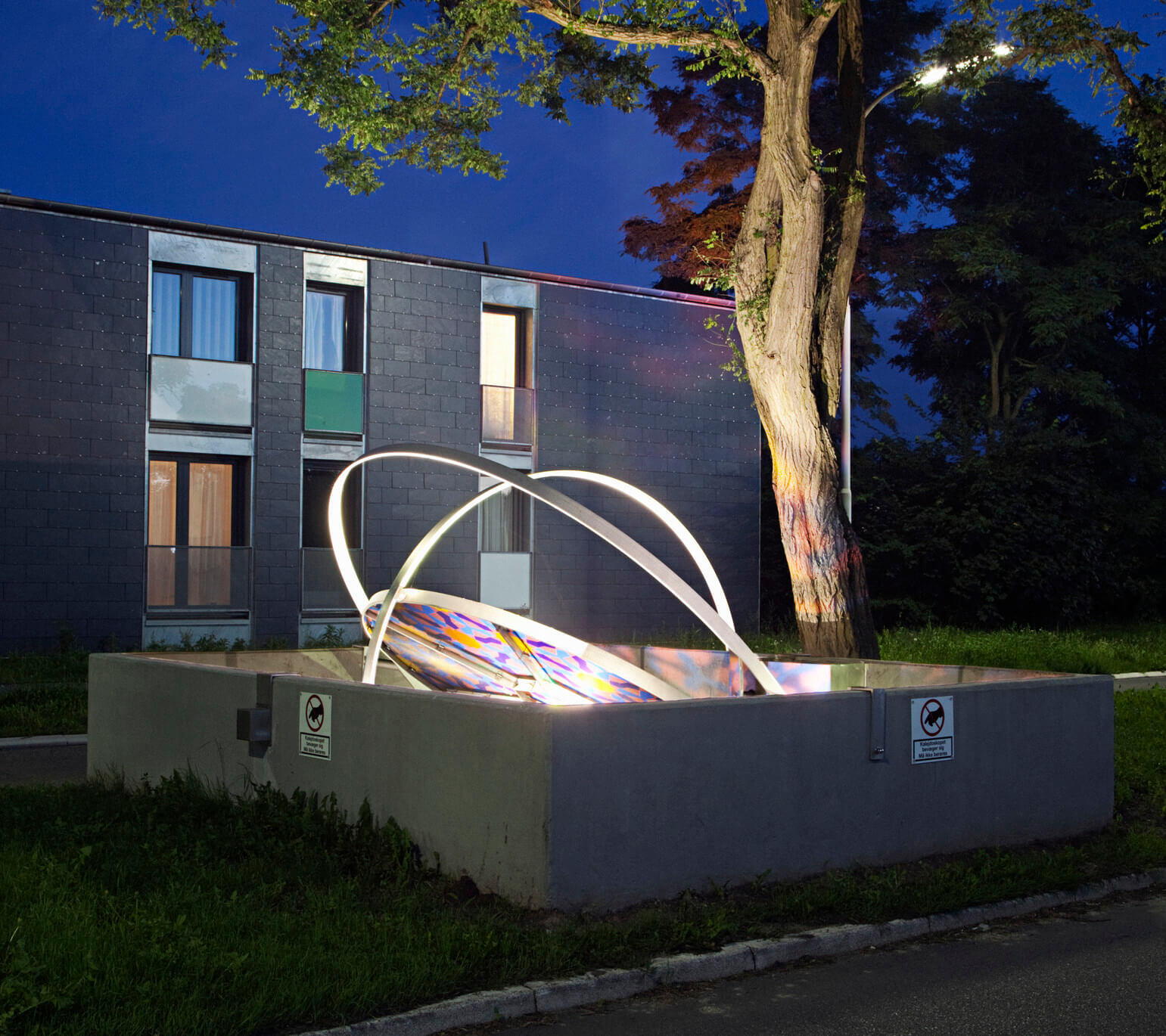 Con dos instalaciones distintivas, hemos creado nuevos puntos de referencia en el sur de Albertslund. La escultura de cristal Caleidoscopio sirve como una linterna gigante que ilumina un túnel peatonal. Desde fuera, llama la atención la colorida instalación de cristal, y en el interior del túnel se despliega el estampado de luz y color que genera el mosaico.
