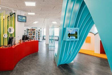 En la Biblioteca de Løkken, la escuela local se encuentra con la sociedad que la envuelve. Con la fusión de la biblioteca y los espacios de aprendizaje, los estudiantes están en contacto tanto con actividades locales como con perspectivas globales, lo que añade una faceta práctica a su educación.