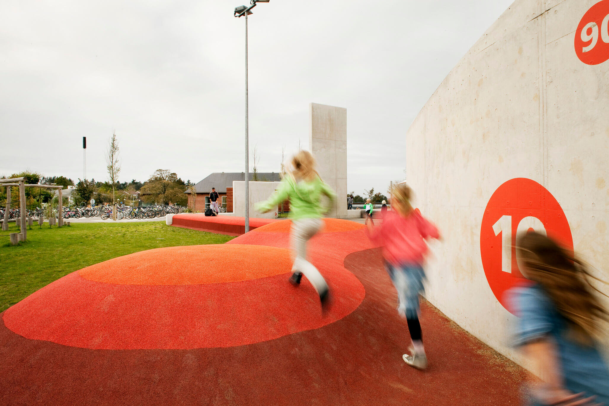 En el parque de actividad de la Escuela Skåde, hemos combinado el deporte, el juego y la imaginación, para que niños y jóvenes se mueran de ganas de moverse.