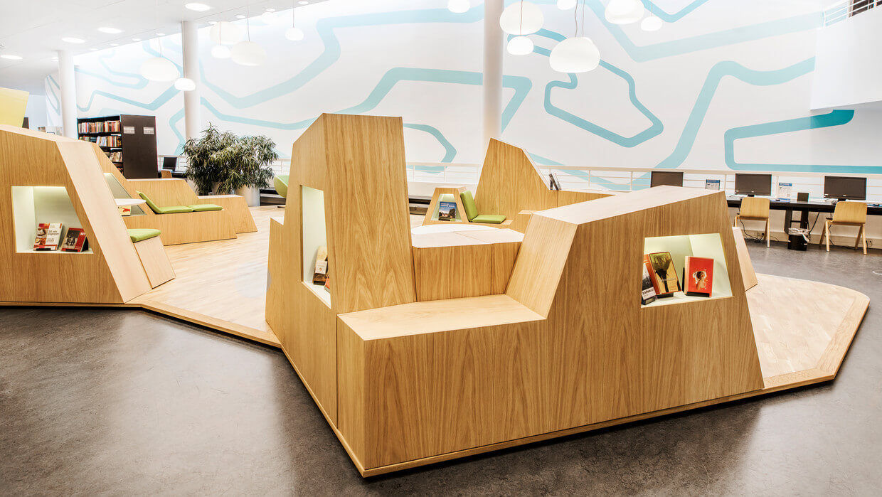 The new cultural destination brings together the city's library, tourist information, cinema, Citizen Service Center, restaurant, café, and conference facilities. With an oasis, a snail house, and a gaming zone, the connected venues serve as a meeting spot for citizens, employees, children, and young people.