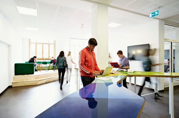 University College of Northern Jutland has gained a distinctive profile with its new interior, which makes the institution's activities visible both internally and externally. Spatial design supports the pedagogical principles and acts as an active tool for learning in an inspiring environment.